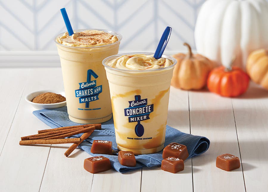 Our pumpkin desserts are back and here to delight all season long! Try our Pumpkin Spice Shake or Salted Caramel Pumpkin Concrete Mixer® with Fresh Frozen Custard and real pumpkin purée.