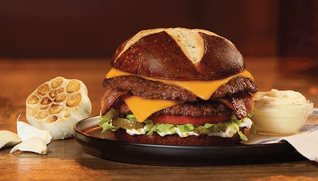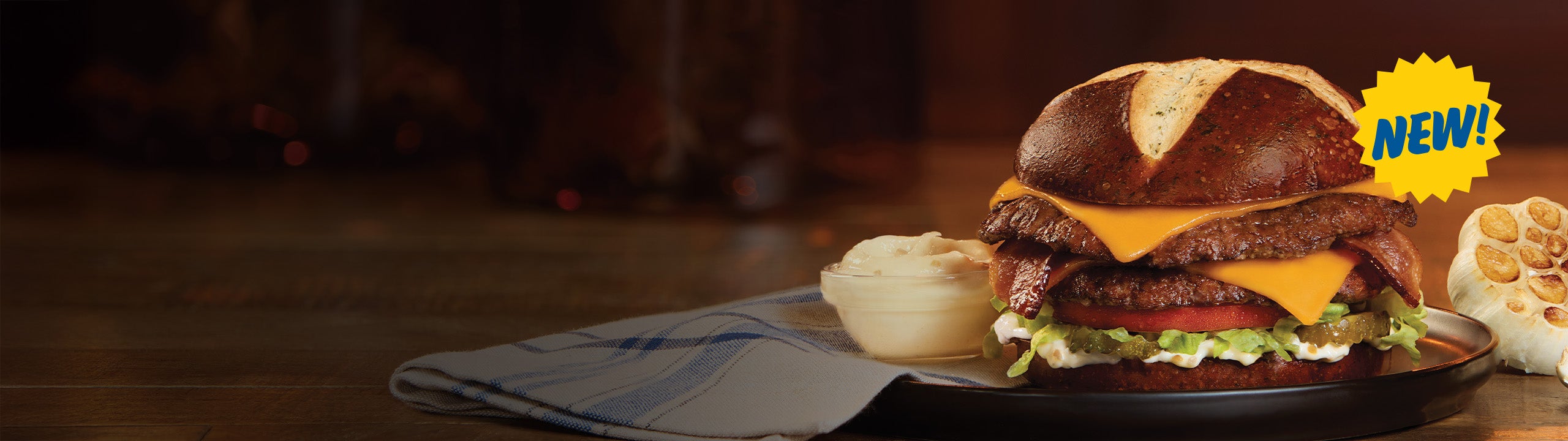 Try the limited time Roasted Garlic & Bacon Pub Burger.