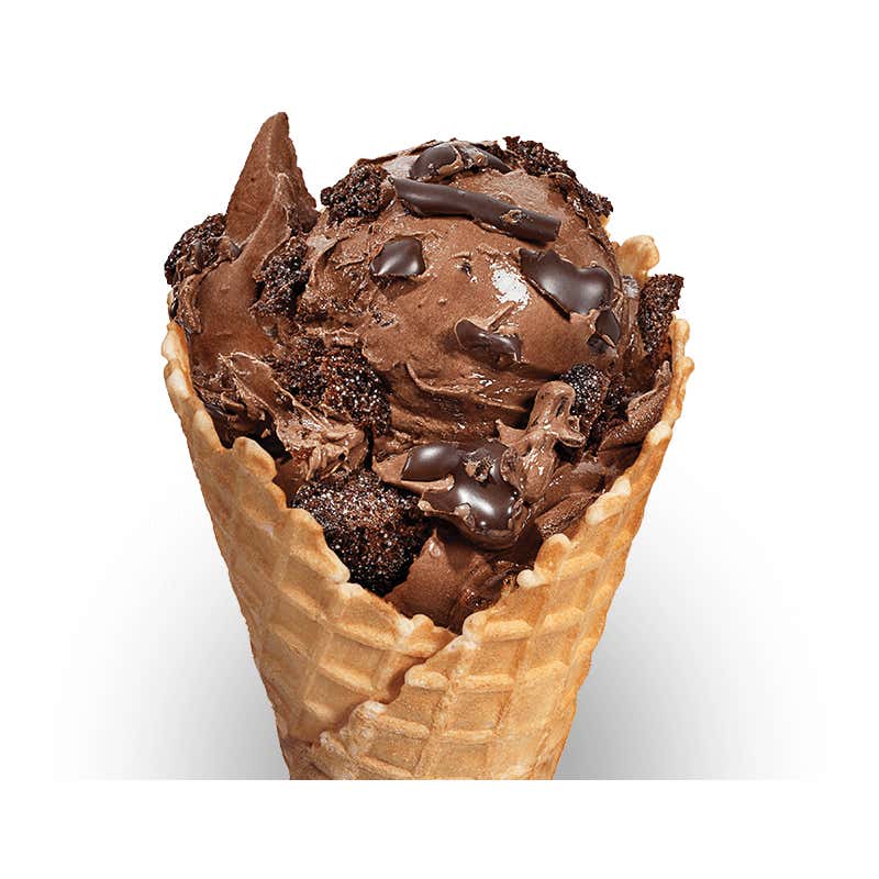 Dark Chocolate Fresh Frozen Custard swirled with chocolate cake and novelty chocolate.