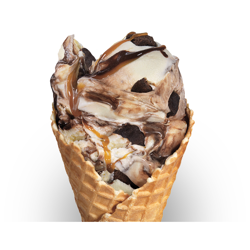 It's like a brownie a la mode! Rich, dark chocolate brownie batter, chewy chocolate brownie chunks and ribbons of old fashioned salted caramel all blended with our creamy Vanilla Fresh Frozen Custard.