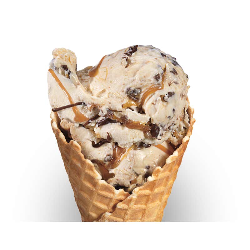 Lip-smacking Peanut Butter Fresh Frozen Custard lavishly joined with ribbons of old fashioned salted caramel and novelty chocolate.