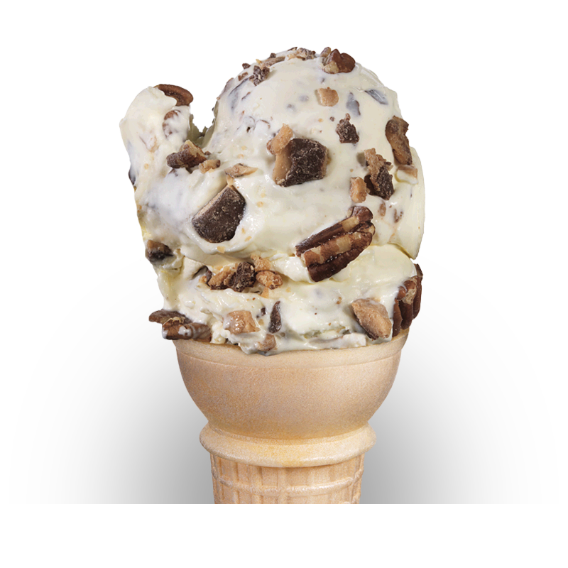 Toasted pecan pieces and crunchy bits of Heath Bar poured lavishly into our creamy Vanilla Fresh Frozen Custard.